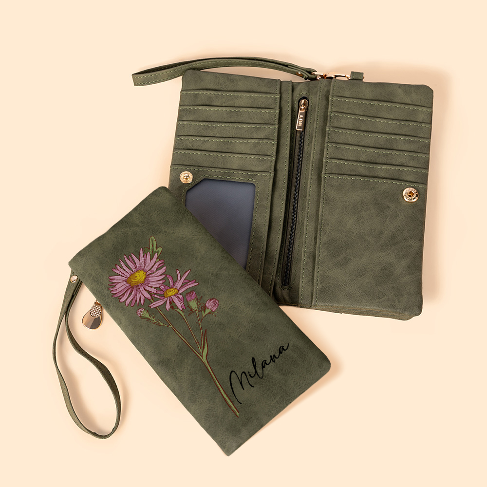 Style Personalized Watercolor Birth Flower Wallet for Woman